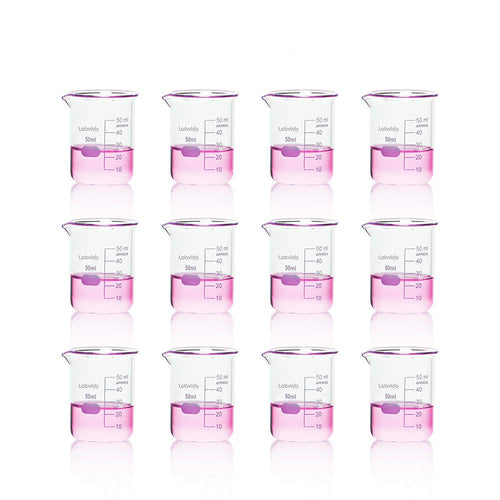 Labvida 12pcs of Glass Beakers Shot Glass, Vol.50ml, 3.3 Borosilicate Griffin Low Form with Printed Graduation, LVA003