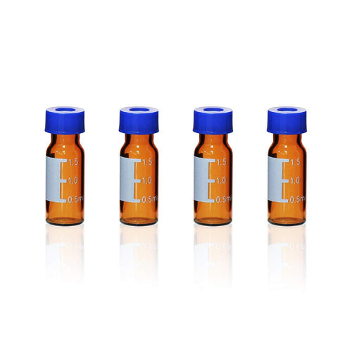 Labvida 100pcs of 2ml Glass Liquid Scintillation Vials, Amber Color, with Graduation and Blue Cap, LVQ001