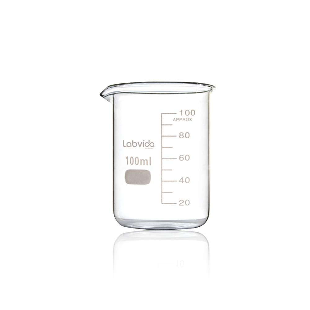 Labvida 12pcs of Griffin Low Form Glass Beakers, Vol.100ml, 3.3 Borosilicate with Printed Graduation, LVA005
