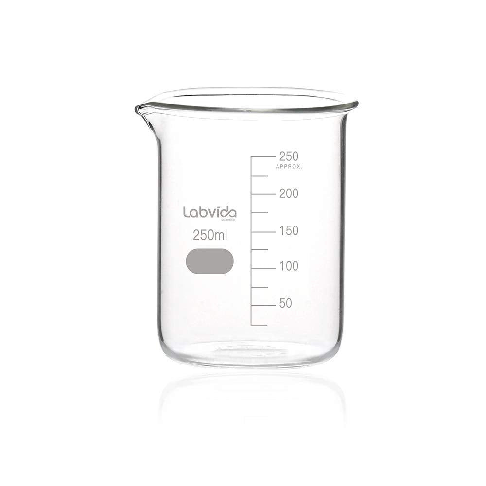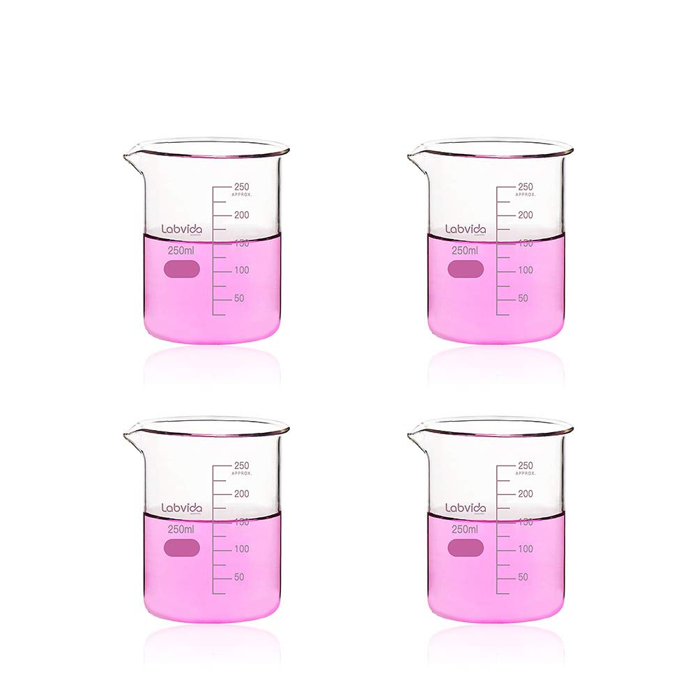 Labvida 4pcs of Griffin Low Form Glass Beakers, Vol.250ml, 3.3 Borosilicate with Printed Graduation, LVA009