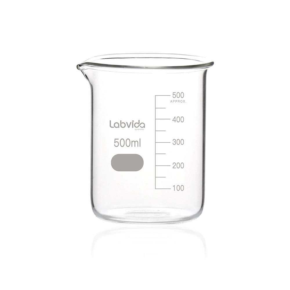 Labvida 4pcs of Griffin Low Form Glass Beakers, Vol.500ml, 3.3 Borosilicate with Printed Graduation, LVA012