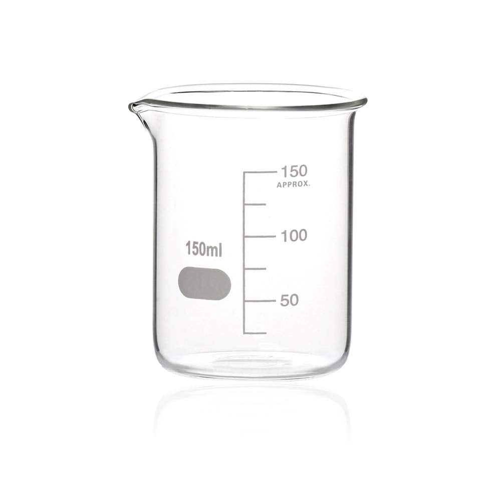 Labvida 6pcs of Griffin Low Form Glass Beakers, Vol.150ml, 3.3 Borosilicate with Printed Graduation, LVA006