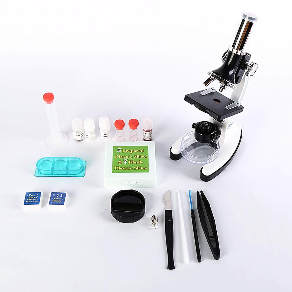 - 28-Piece Kit Composition: 1pc of Metal Body Microscope, prepared and blank plastic slides, cover slips, petri dish and other laboratory accessories, instruction guide and carrying box. Easy storage and carrying.